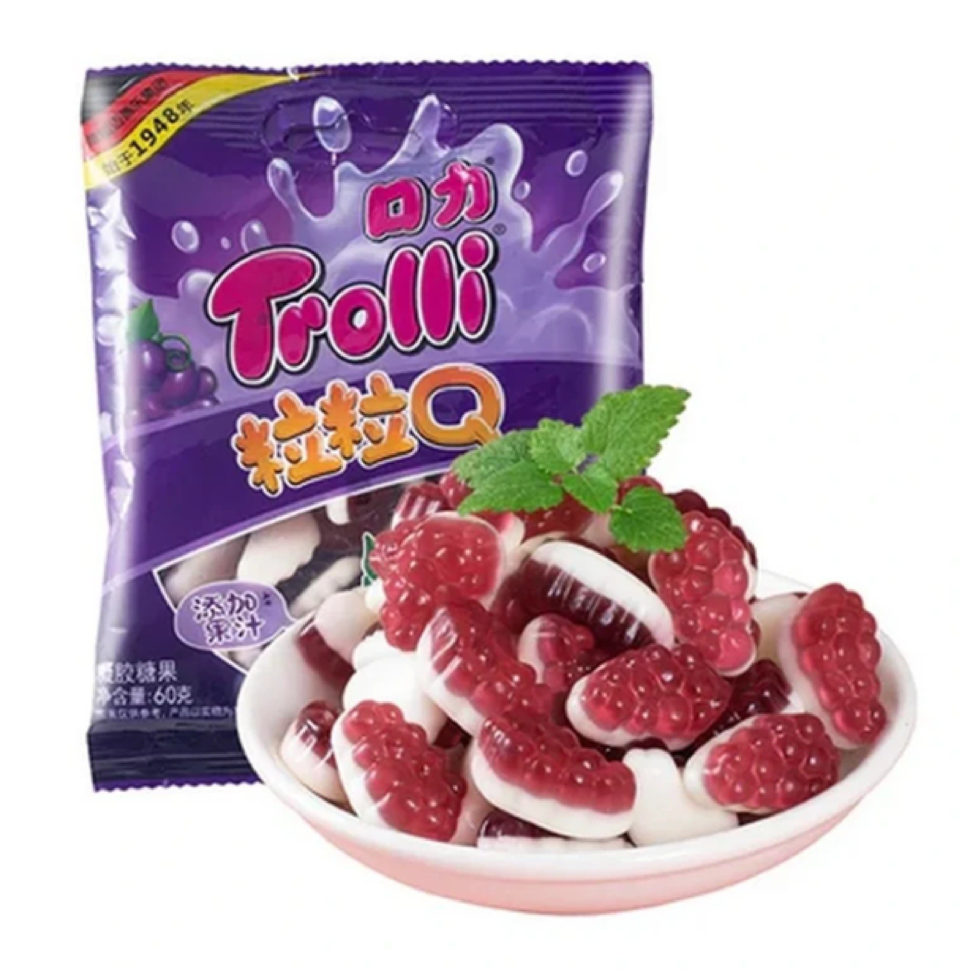 Το Trolli Chewy Ball Grape είναι ένα λαχταριστό, μαλακό ζελεδάκι με έντονη γεύση σταφυλιού που σκάει γλυκά στο στόμα. Κάθε μπαλίτσα έχει ελαφρώς τραγανή επίστρωση και ζουμερό εσωτερικό, προσφέροντας μια μοναδική υφή που αγαπούν μικροί και μεγάλοι. Η χαρακτηριστική grape γεύση του είναι δροσερή, αρωματική και ιδιαίτερα απολαυστική. Ιδανικό για γρήγορο σνακ ή για να το μοιραστείς με φίλους.